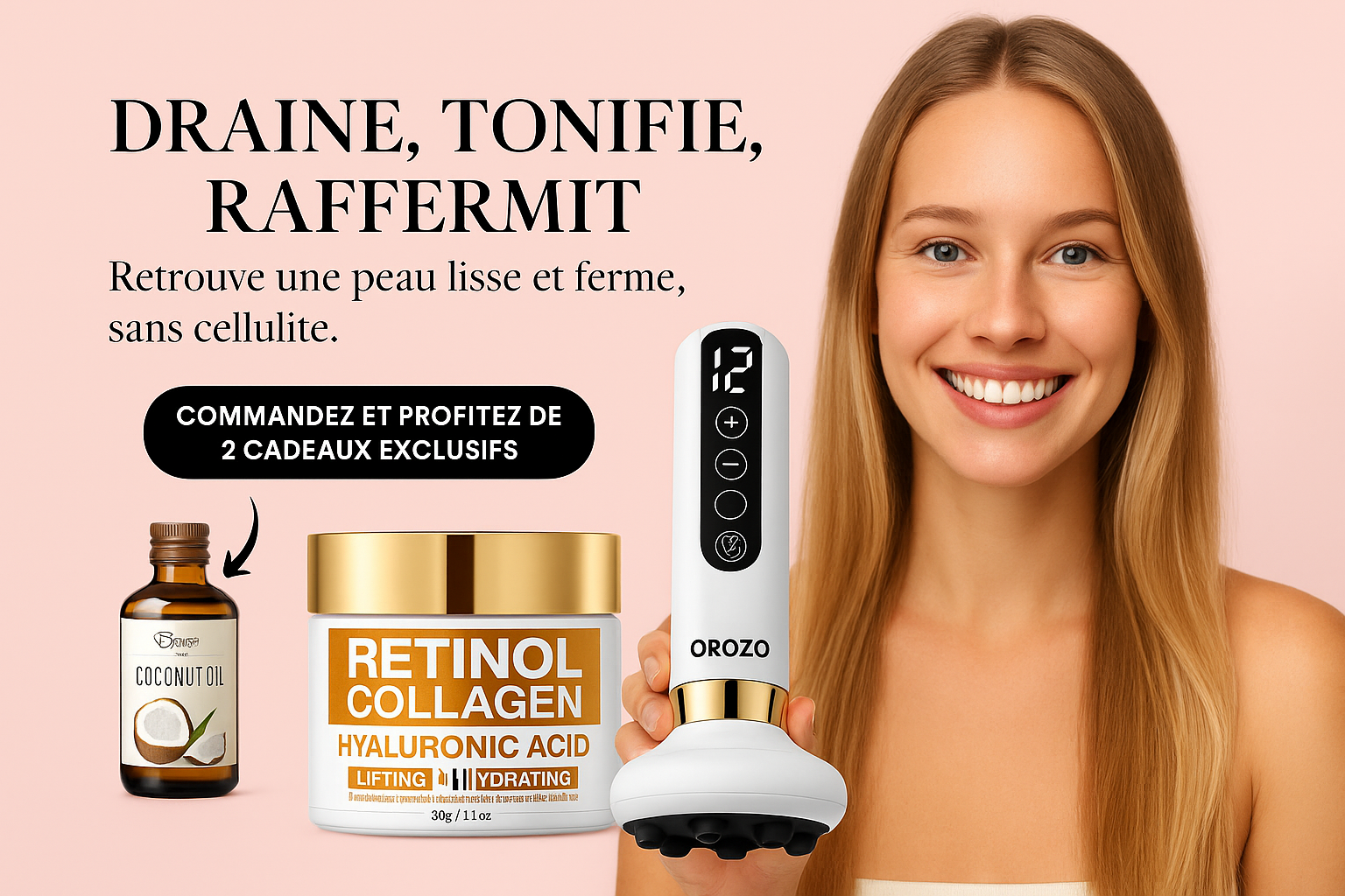 DĂ©couvrez Orozo, le masseur anti-cellulite qui rĂ©veille la beautĂ© naturelle de votre corps. Chaque sĂ©ance est une expĂ©rience de dĂ©tente et de confiance, qui aide Ă drainer, raffermir et lisser la peau tout en procurant une sensation de lĂ©gĂšretĂ© et de bien-ĂȘtre profond. Offrez-vous ce moment rien quâĂ vous â sans risque, avec une satisfaction garantie Ă 100 %.